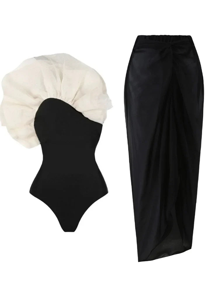 Make a bold statement with this elegant one-piece swimsuit, crafted from sleek solid-color fabric and adorned with a dramatic 3D floral appliqué. Designed to highlight feminine curves while adding a touch of high-fashion glamour to your beach look.